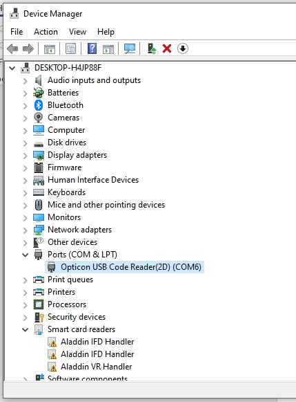 Hộp thoại xuất hiện, bạn tiến hành kiểm tra COM port name, tại ví dụ này là COM6 và có chữ Opticon ở đầu dòng (ở mỗi máy thì tên này sẽ khác nhau – cần lưu ý phải xác định tên COM port cho chính xác, để thực hiện cấu hình tại bước sau)