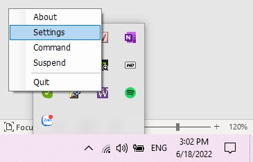 Click chuột phải vào Icon chọn Settings: